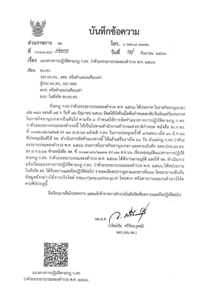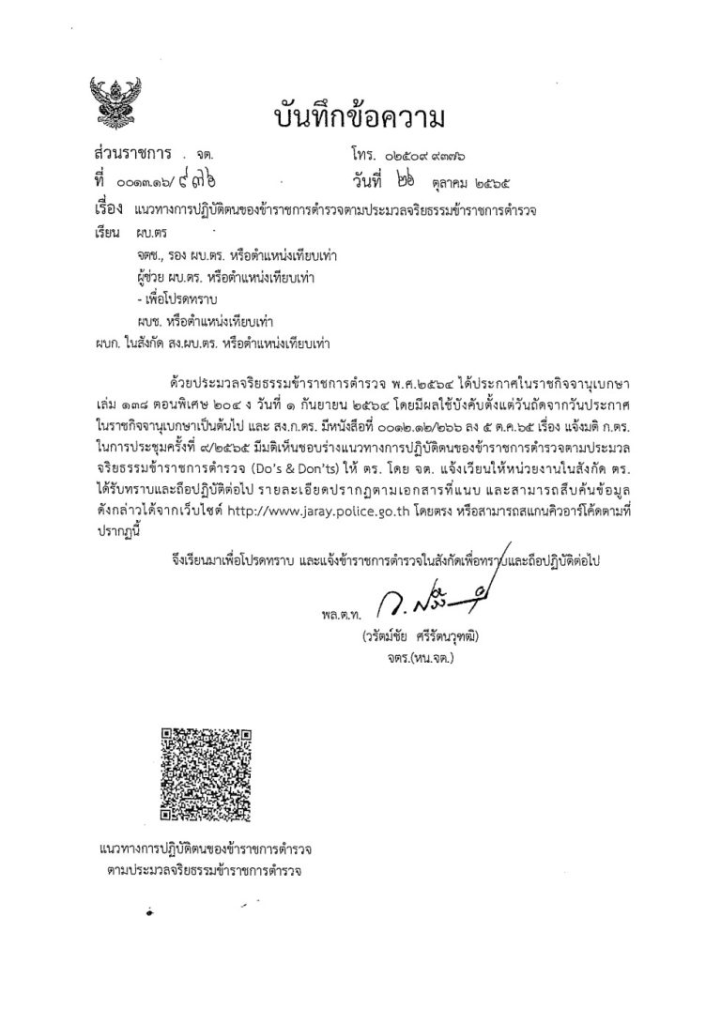 ดาวน์โหลดแนวทางการปฏิบัติตามกฎ-ก.ตร.-ว่าด้วยจรรยาบรรณของตำรวจ พ.ศ.2566