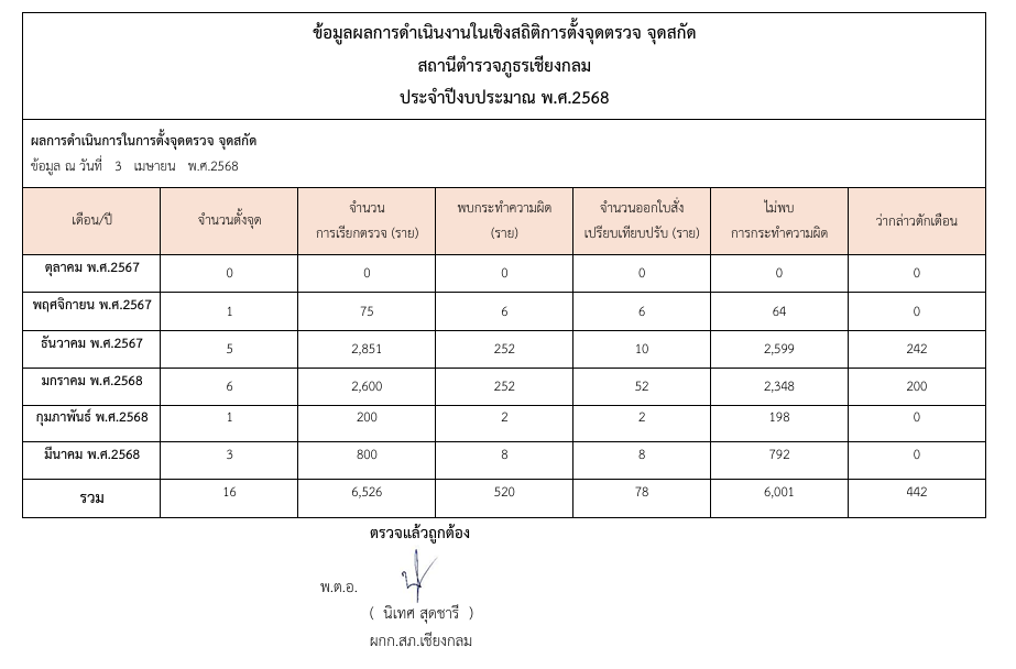 สถิติการตั้งจุดตรวจจุดสกัด