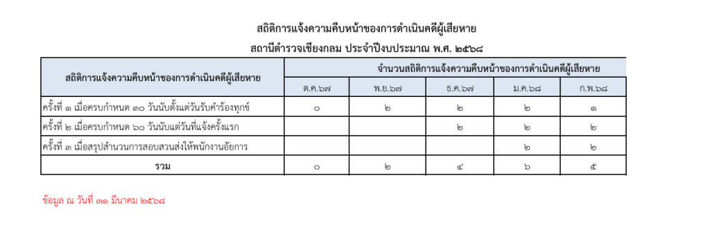 ข้อมูลการแจ้งความคืบหน้าของการดำเนินคดีผู้เสียหาย
