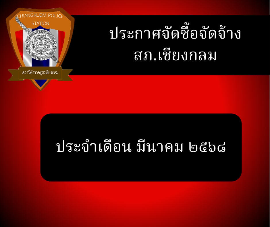 คลิ๊กดู ประกาศจัดซื้อจัดจ้าง เดือน มี.ค.68 ที่นี่